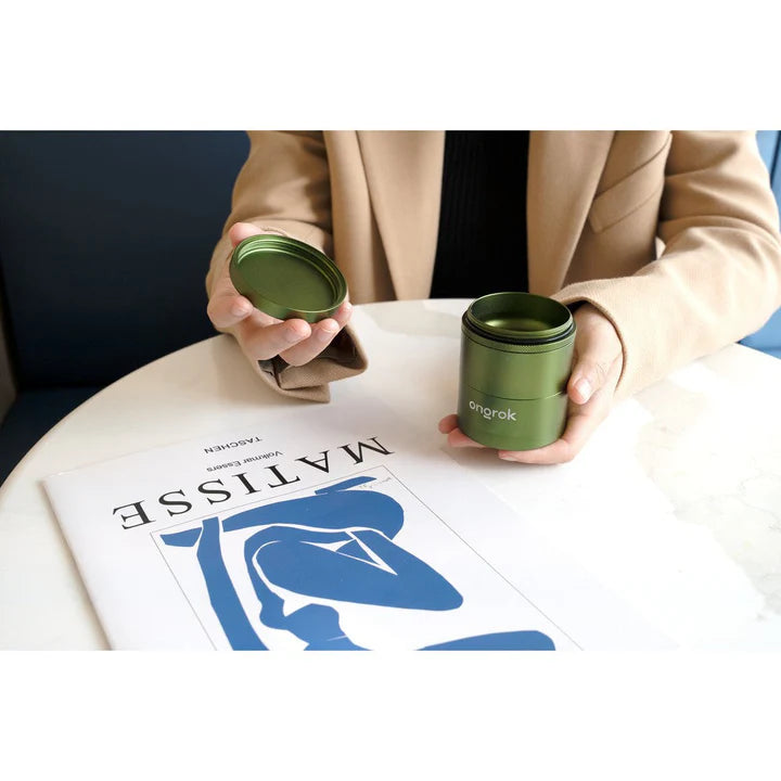 The ONGROK 5-Piece Flower Petal Grinder is a durable multi-chamber grinder designed for smooth grinding, secure storage, and easy cleaning. Its flower-shaped teeth provide a consistent grind, while the removable screen, airtight storage chamber, and quarter-turn locking system help keep contents fresh and contained.