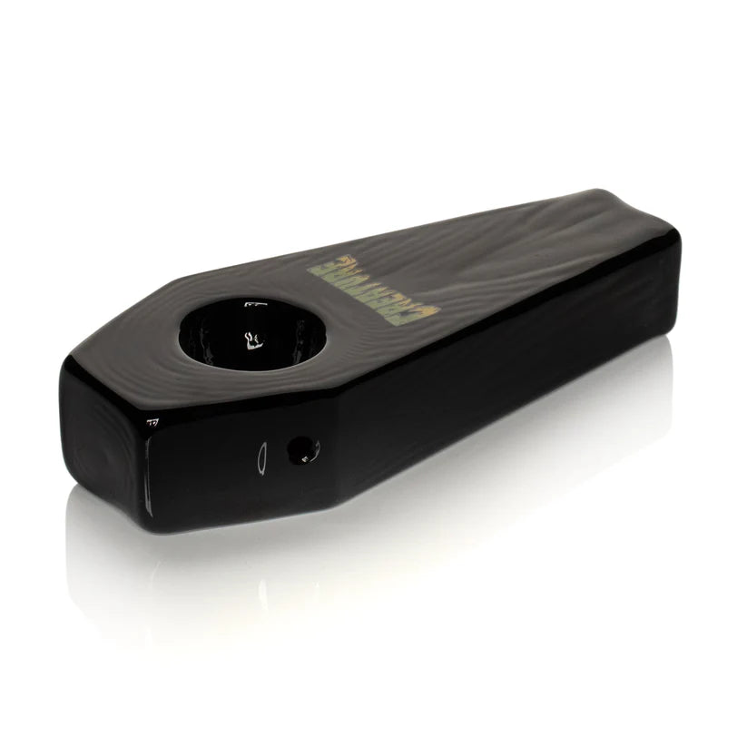 Take your ganja beyond the grave with the 5” Coffin Hand Pipe from Creature x GEAR Premium®. Made of durable 100% borosilicate glass and featuring an easy-to-use carb hole to control airflow and keep you from coughin’. Includes a protective Coffin Pouch with purchase.